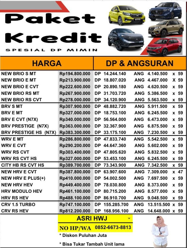 Dapatkan pelayanan terbaik pembelian mobil Honda hanya di Honda Jambi. Layanan Konsultasi Pembelian Mobil Honda 24 Jam, Fast Response, Dan Data Dibantu Sampai ACC.